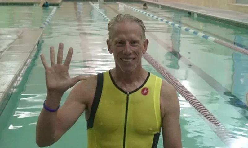 a little bit of elevation and and that is, I mean that that accumulated ab equals six and a half, six and a half Iron Man's Yes. And when I first heard it, I I was curious whether you were doing it as swim bike, run, swim bike, run, swim bike, rung. But this is, this was six and a half out, six and a half times an Ironman Distance swim followed by six
