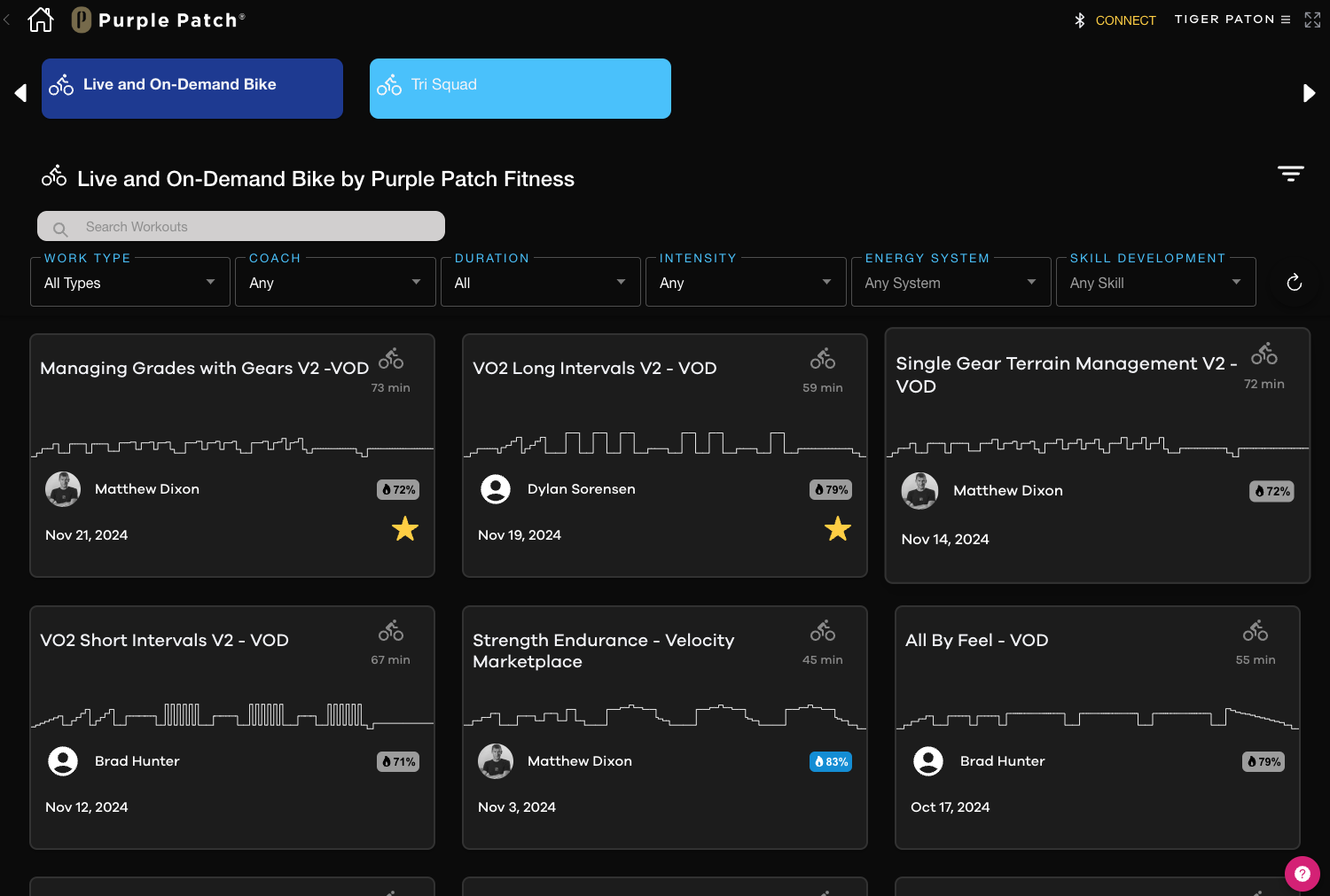 Traditional cycling fitness programs lack direction and progression — which means athletes plateau or get bored. Rather than doing random intervals, our bike sessions are built on a comprehensive full-season structured program that evolves over time, ensuring that you continue to get fitter and stronger no matter when you’re competing. The workouts meet you where you’re at, no matter your fitness level, and you’ll get expert instruction rather than superficial cheerleading.